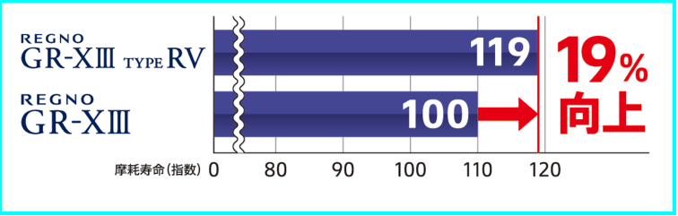 RVに装着した場合、専用タイヤ(TYPE RV)のほうが、寿命が19%向上