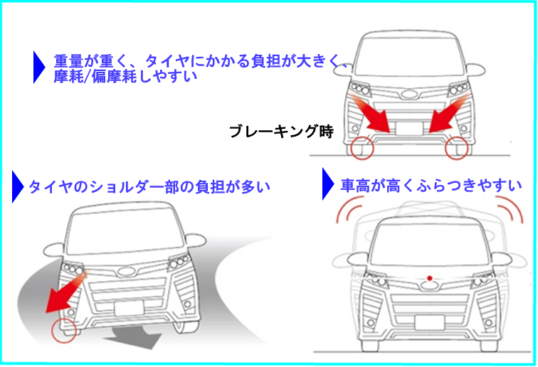 摩耗/偏摩耗しやすいというRV車の特徴に合わせ、ふらつきと偏摩耗を抑制。