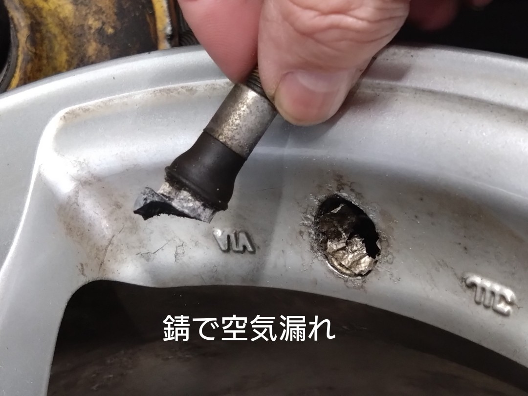 少しずつ漏れているので持ち主さんも知らなかったようで、お伝えすると「知らなかった、分からないものですね。」とびっくりされていました。1本から漏れを発見しましたが、ほかのタイヤも怪しかったのでじっくり確認するとやはりすべてのバルブ根本から空気漏れをしていました。