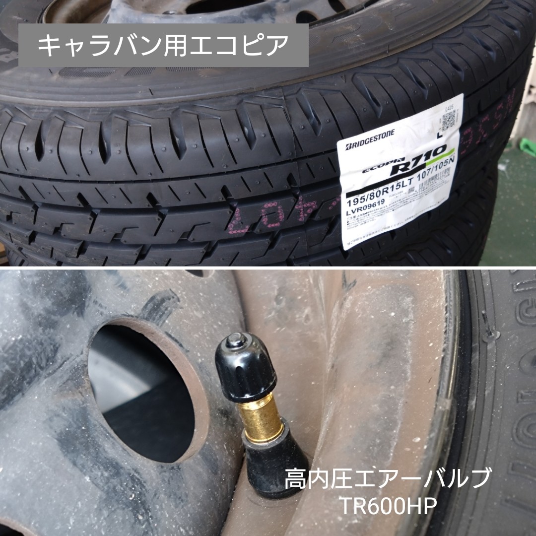 当店ではハイエース、キャラバンには安全と安心のために高内圧エアーバルブに必ず交換しています。