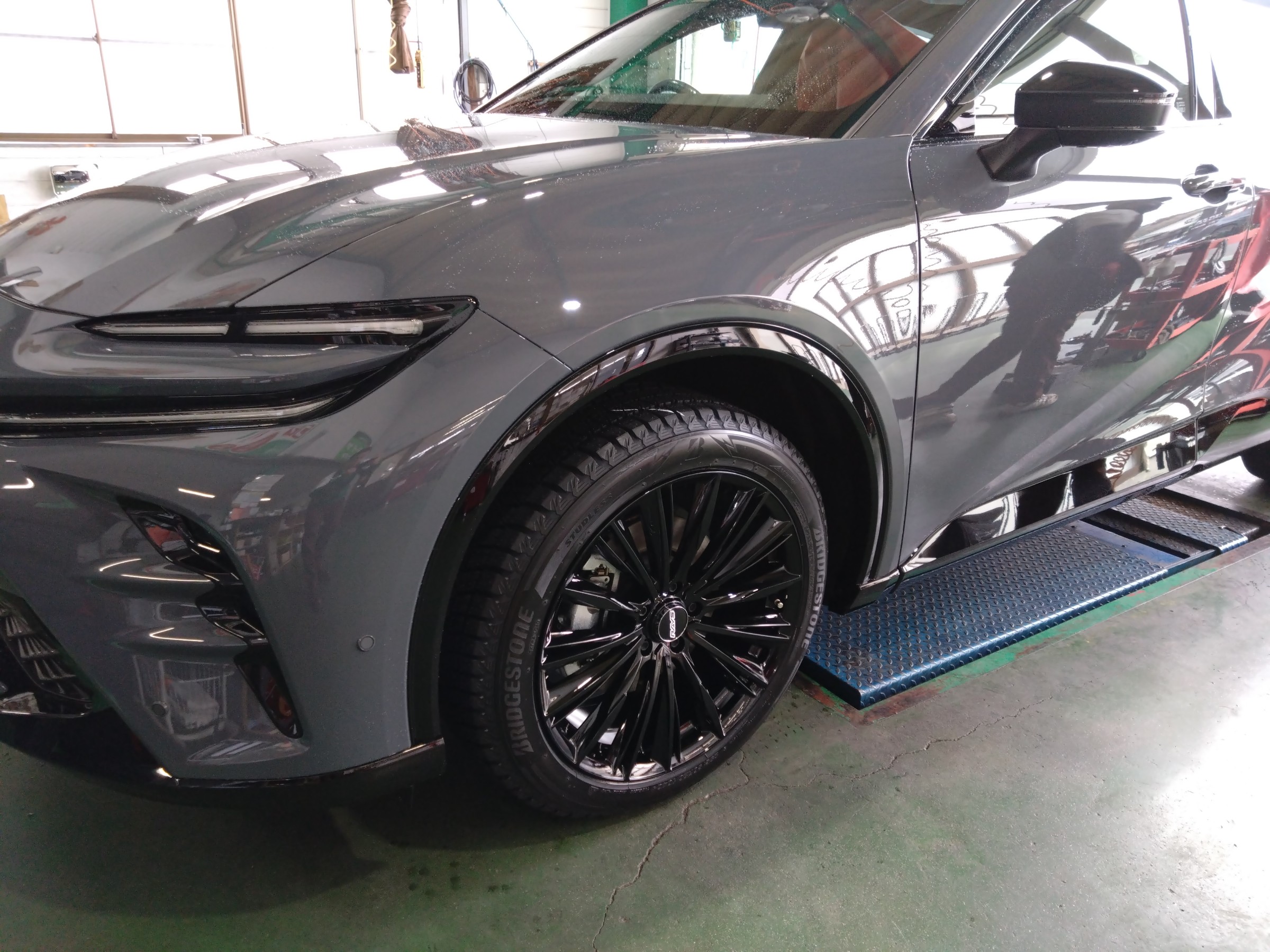 納車直後のクラウンスポーツにブリザックをご装着。