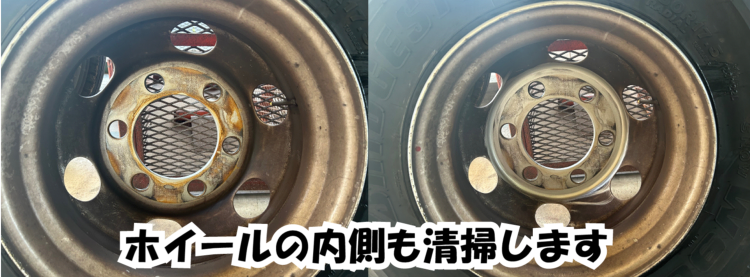 タイヤを外した後、ハブのサビや汚れ具合をプロの目で確認します。