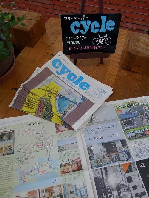 フリーペーパー「Cycle」が来ました! ポスト 2017年10月17日 自転車ライフの情報誌「Cycle」が届きました。数量限定ですが無料でお持ち帰り下さい。 今回は「びわいち」の情報、西宮・芦屋のポタリング情報などが載っています。サイクリングに良い季節です。ボクも走りたいなぁ!! 担当:小林利美