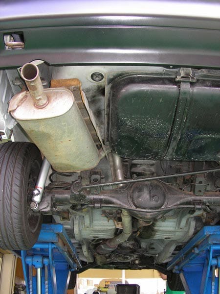 すんなり交換と言ってもAE86の純正マフラーは最近の車のようにネジ外したら簡単に取れるというものではないので色々な部品外さないと交換できないのでちょっと手間はかかりましたが・・・