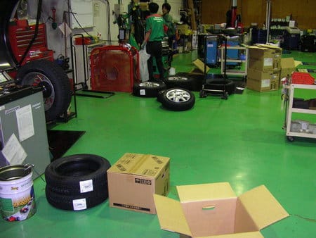 夕方のお客さんのいない時はご予約いただいたスタッドレスの組み付け作業に追われてます。