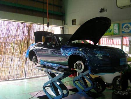 ロードスターにTEINの車高調とEDFCの取付け風景です。