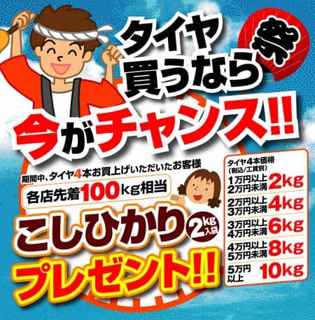 タイヤ4本お買い上げのお客様に“新米 コシヒカリ”をプレゼントしております!!