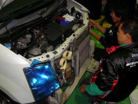 営業終了後、お預かり車両の用品取付けをさせていただいております(⌒_⌒;