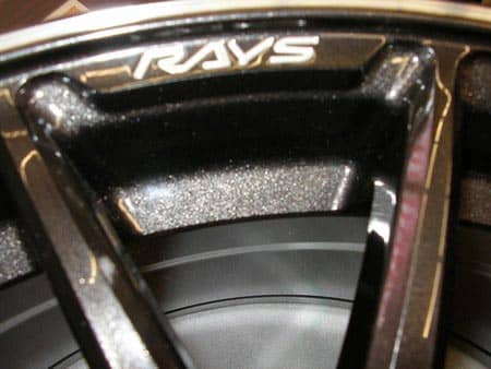 ホイールにあるRAYSなどの文字は、彫り込みされてます。