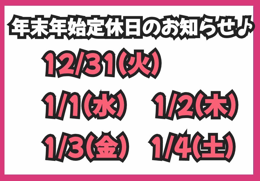 12月31日(火)から1月4日(土)までお休みです!WEBからでもご予約やタイヤのご購入ができます★
