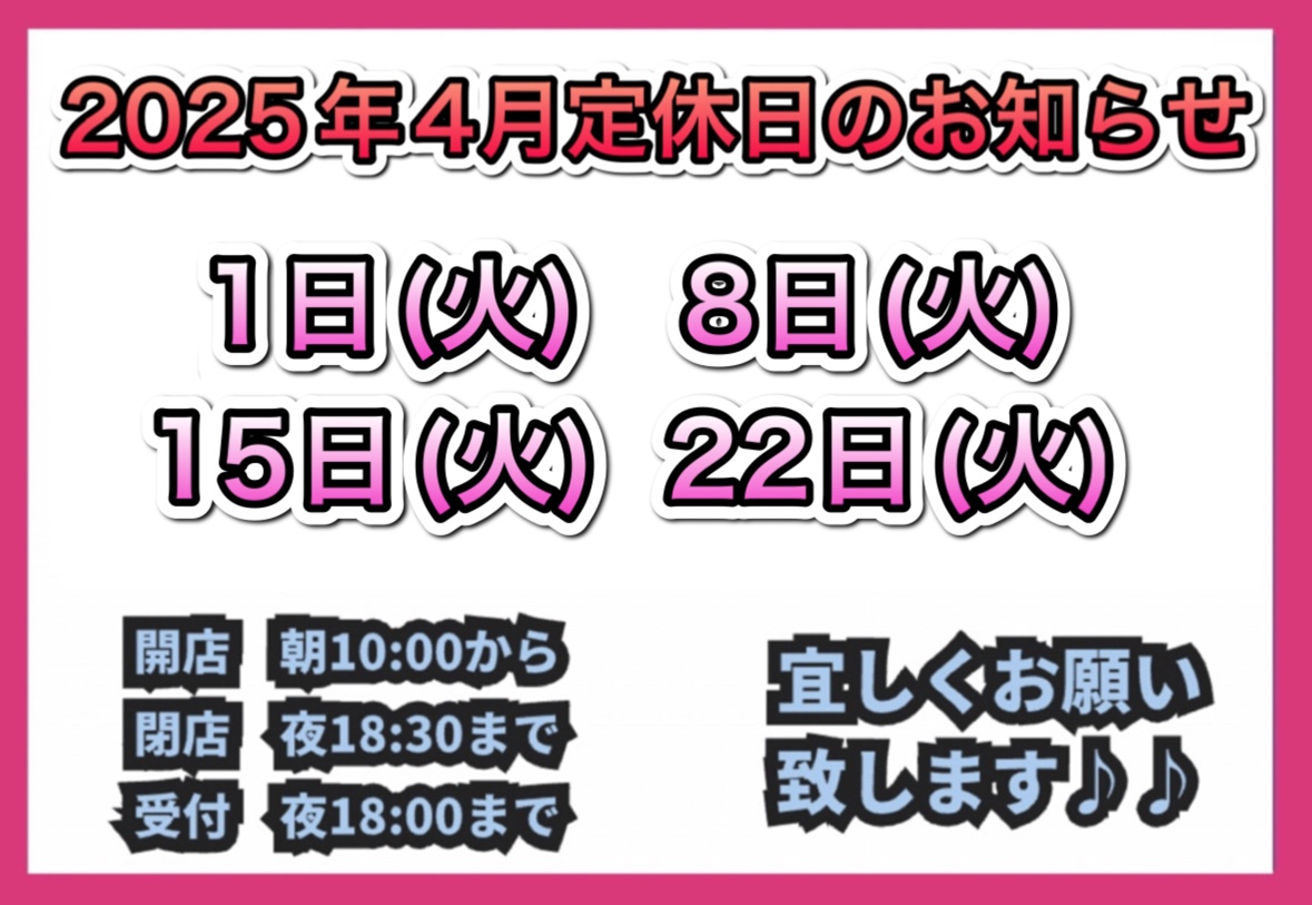 4月定休日のお知らせです!WEBからでもご予約やタイヤのご購入ができます★
