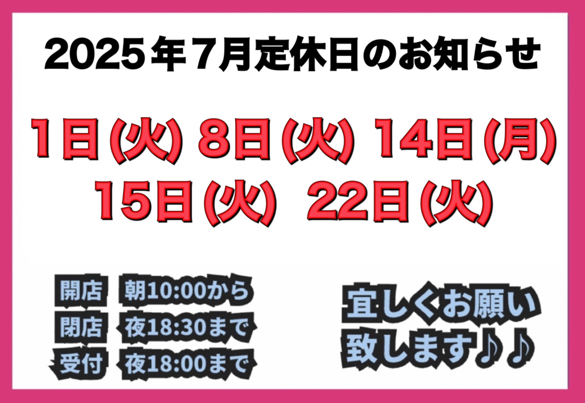 7月定休日のお知らせ♪