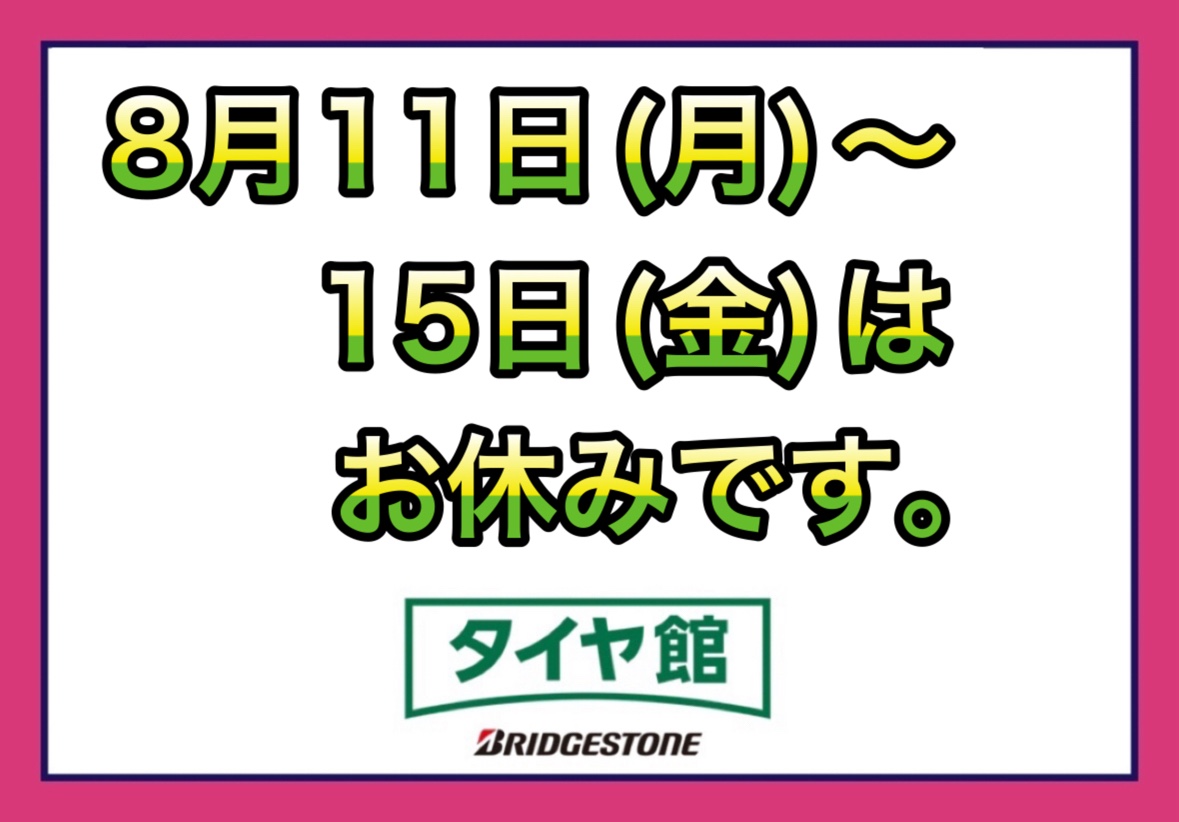 8月11日(月)~15日(金)はお休みです!WEBからでもタイヤ購入ができますよ!