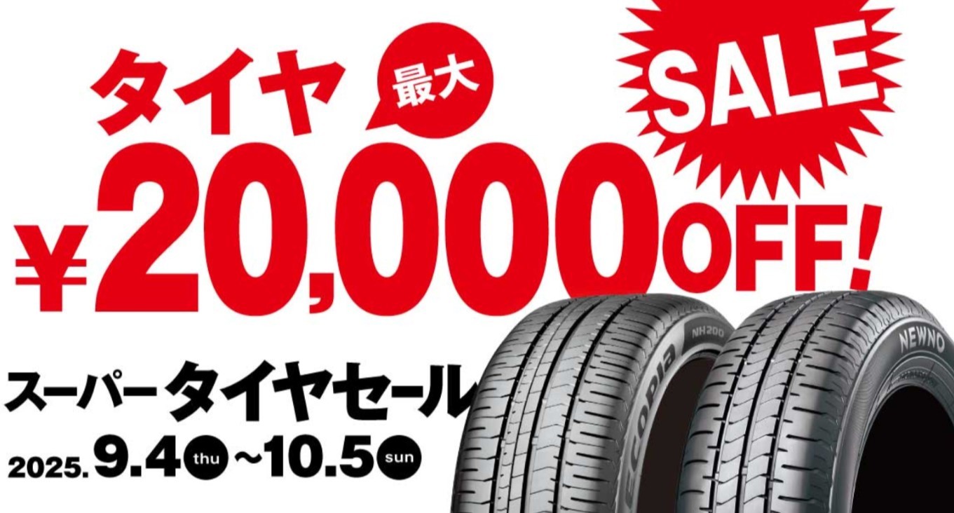 ブリヂストンのタイヤを4本ご購入で最大20,000OFF!