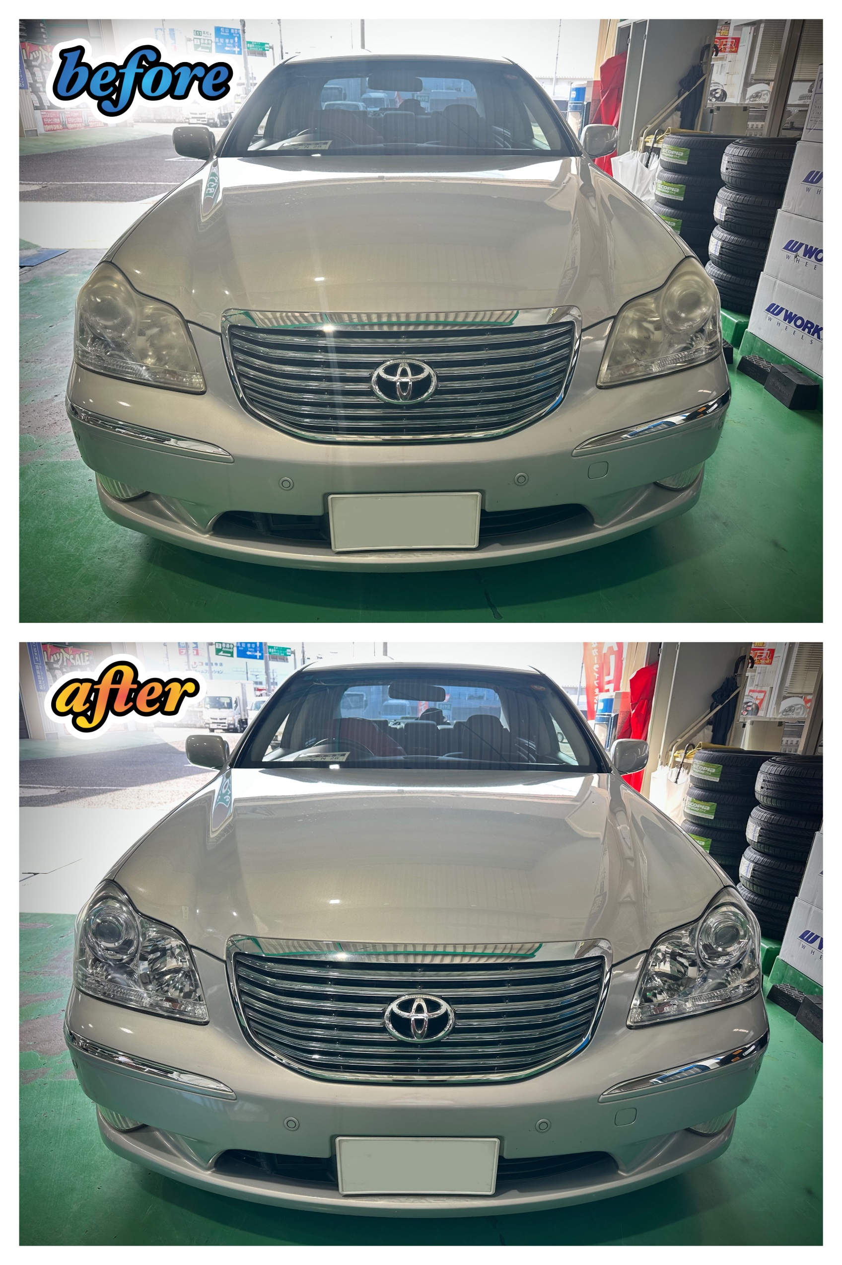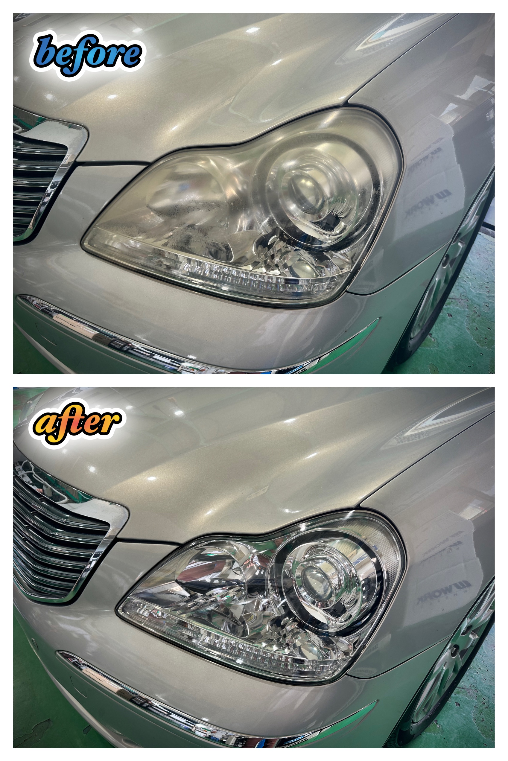 3. ヘッドライト施工前と施工後を比較