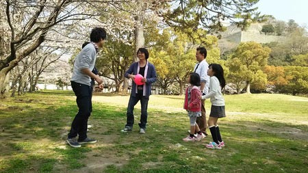 広い広場だったので、バトミントンしたり、ドッチボールしたり