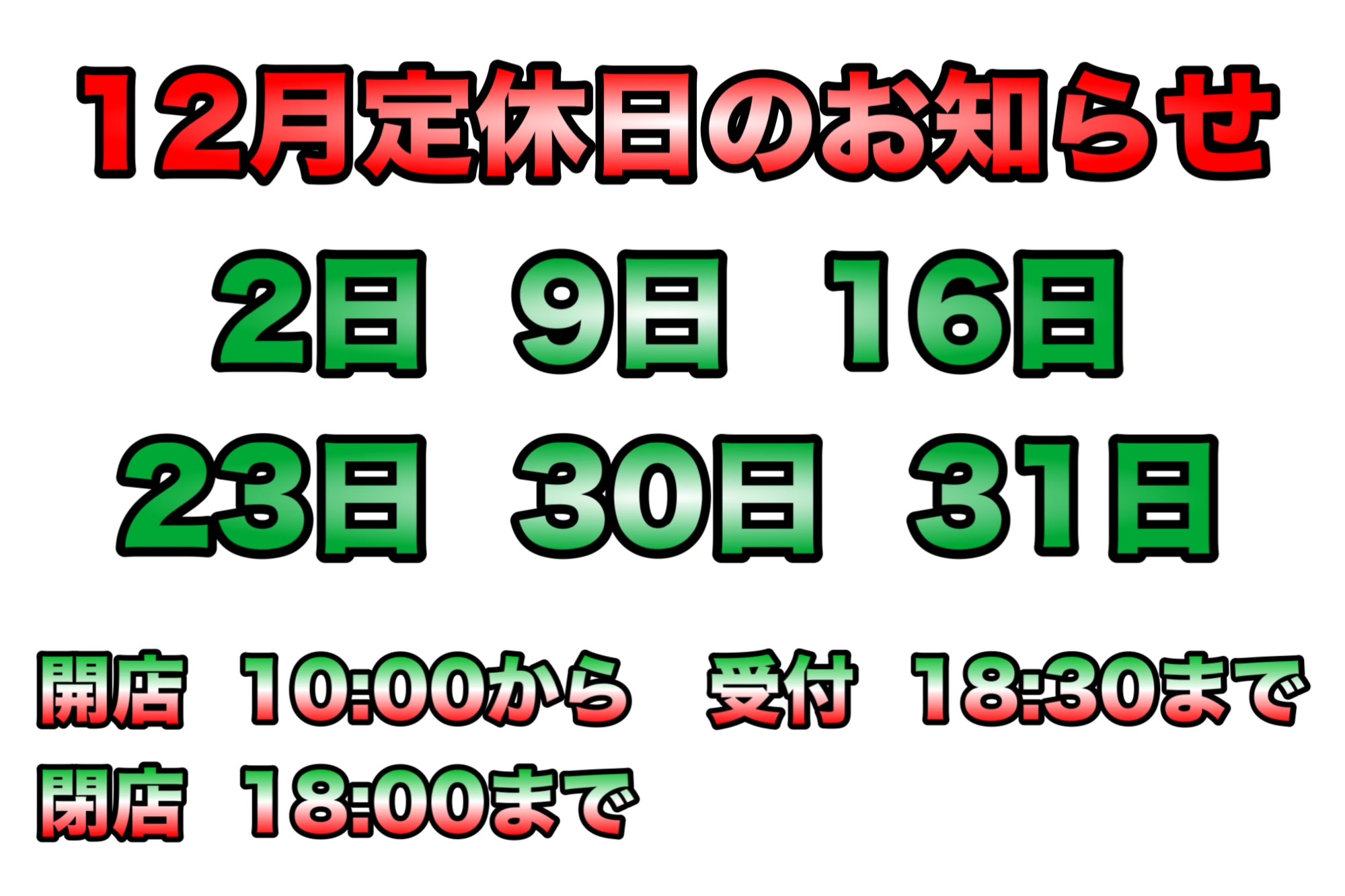 12月定休日のお知らせとWEBからタイヤ購入・ご予約に関するお知らせです★