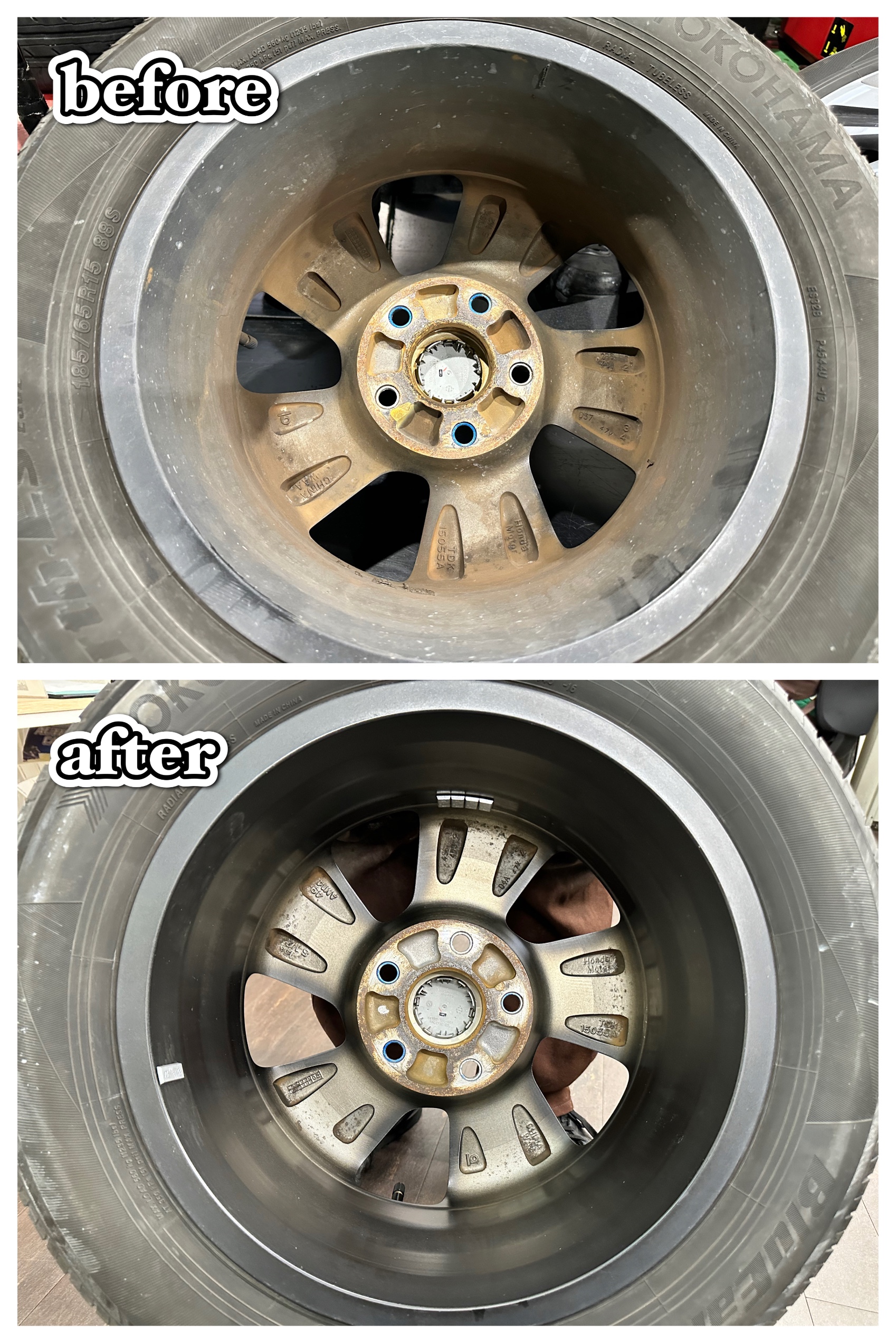 ホイールの内側も色が変わってしまっているのが、