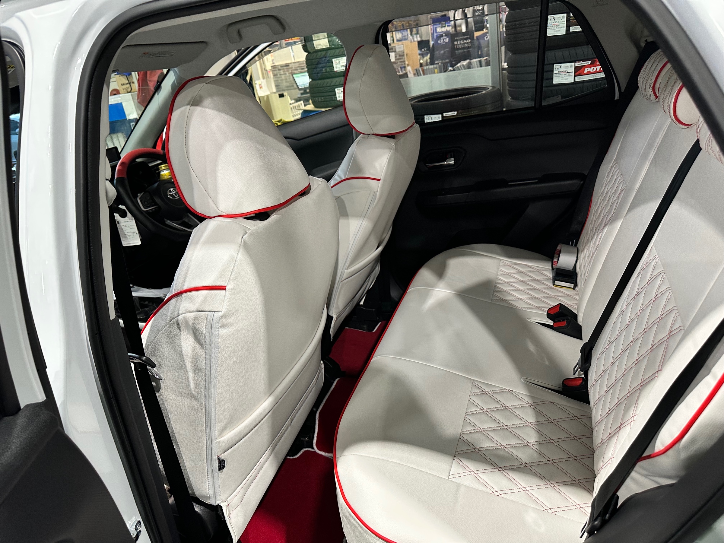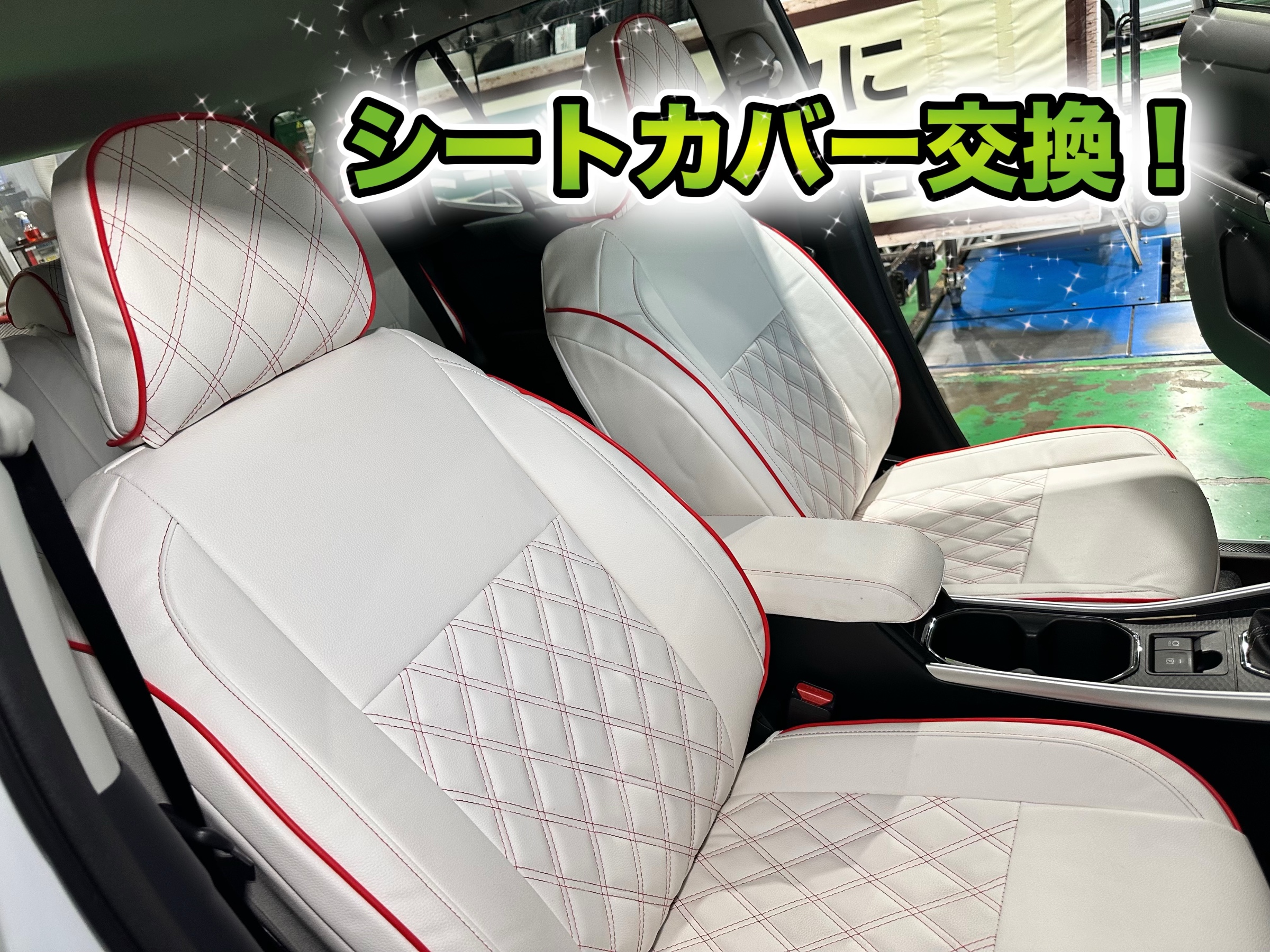 白の車にホワイトのシートにしました!