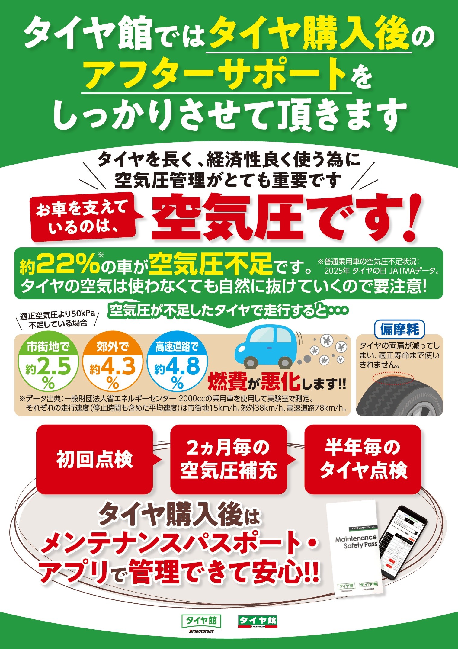 タイヤ館ではタイヤ購入後のアフターサポートも