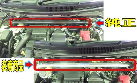 今回純正のストラットタワーバーを 【オクヤマ】製に交換いたしました♪