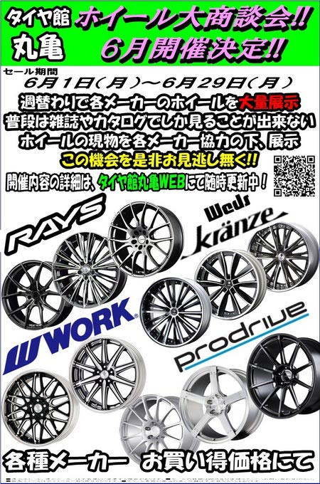 さてさて、ちょっと先の話ですが、6月開催のタイヤ館丸亀リニューアル1周年記念企画のアルミホイールキャンペーンですが