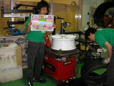 大坪スタッフが真っ白な綺麗なホイールにタイヤ組み込んでましたヽ(*’-^*)。