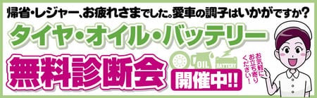 同時に"タイヤ・オイル・バッテリー無料診断会 開催中"です。