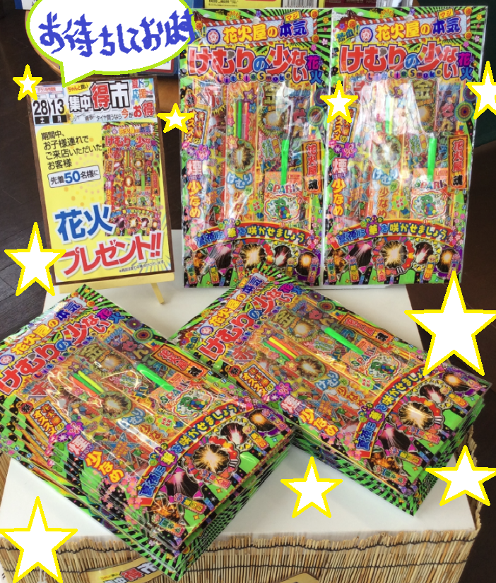期間中、お子様連れのお客様には花火をプレゼントしております!