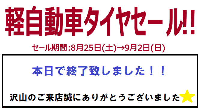 軽自動車タイヤセール終了致しました☆