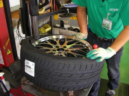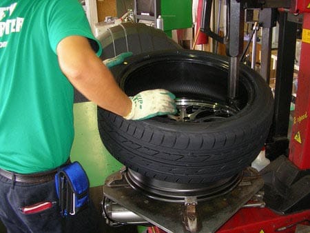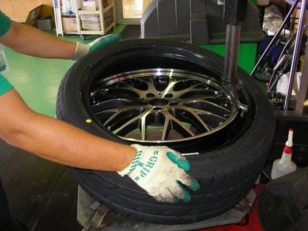 当店の組み付け作業は新品のホイールなどは、なるべくレバーを使わずホイールに傷を入れないよう