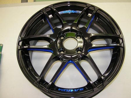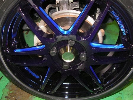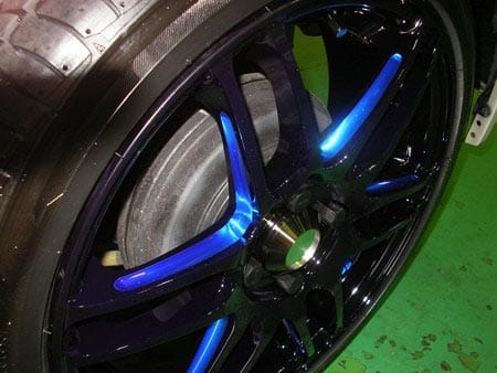 遠目ではブラックのホイールですが、よく見ると全体的にブルーが入っていて