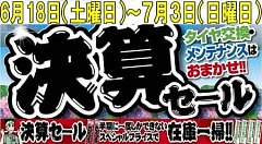 明日18日(土曜日)から7月3日(日曜日)までの期間お得なセール!! --- 【 決算セール 】を開催いたします♪♪ 今回はお得なお買い物だけでなく、購入金額に応じて “グルメ” などのプレゼントイベントもあります♪ タイヤ在庫も豊富にご用意してお客様のご来店をお待ちしております♪ タイヤだけ...