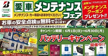 愛車メンテナンスフェア!!バッテリーキャンペーン開催!!