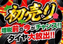 新年あけましておめでとうございます。 本年もタイヤ館丸亀をよろしくお願いします。 ただ今、初売りセールを開催中です。 今年の春には増税が迫っています。 増税前の今がお買得です!!