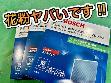 もうすでに花粉がすごいです‼ 2月末から本格化、3月上旬から花粉のピークを 迎えるみたいです(゚д゚)! もうすでにヤバいです、、、 お車でも花粉対策ができます‼ お車にもマスクのような、 エアコンフィルターがついているのは ご存知ですか?? 交換目安は約1年または1万kmです★ 当店で取り扱っ...
