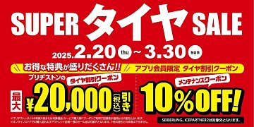 ブリヂストンタイヤをお得に買える!スーパータイヤセール開催中!!