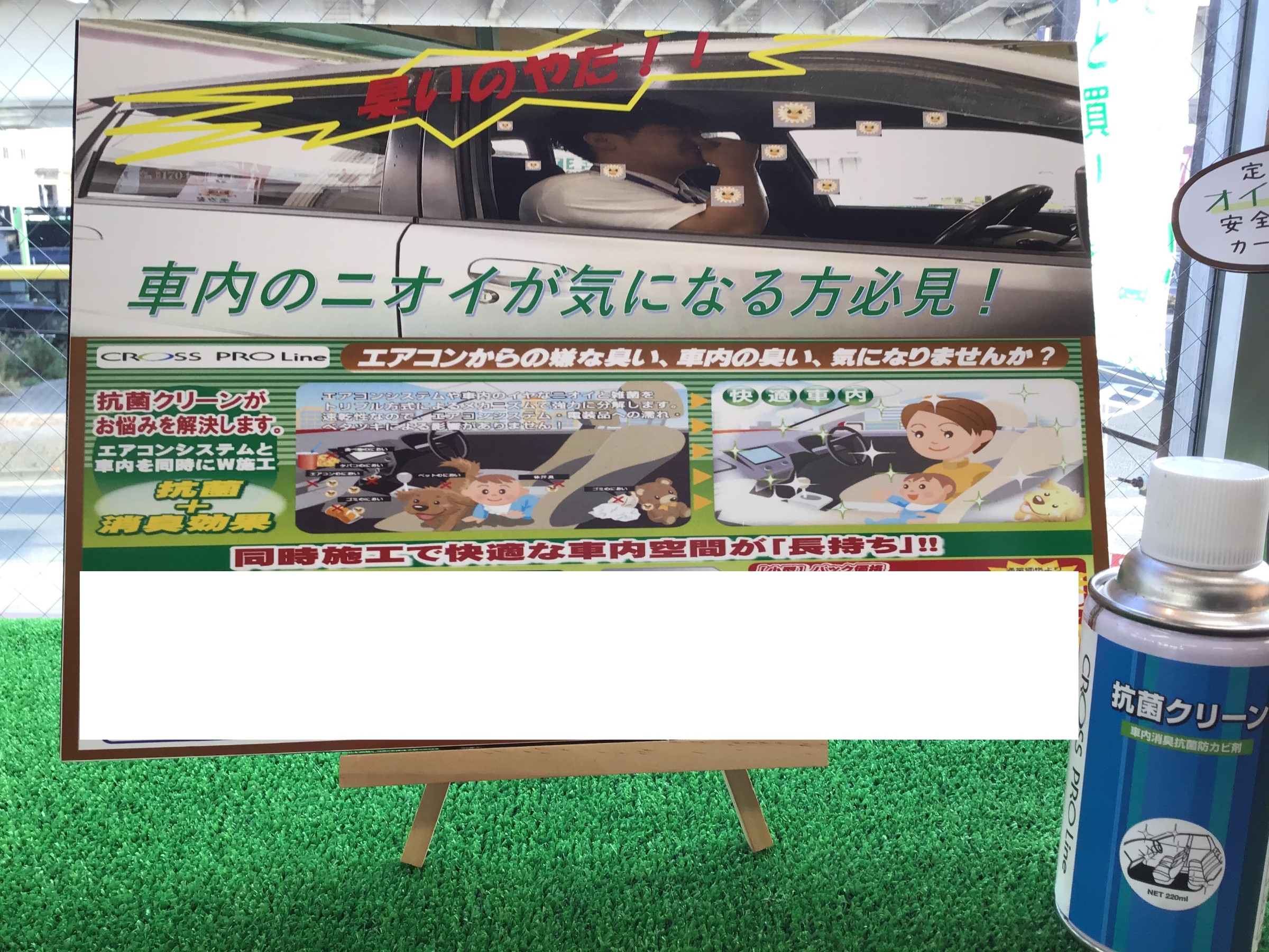 車内抗菌クリーン!車内やエアコンの気になるニオイを元から除去!更に抗菌で菌が繁殖しにくくなる環境に!15分程の施工で約半年間効果が持続します\(^o^)/
