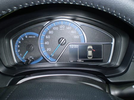 メーターの右下にカラー液晶のディスプレイが有り、燃費データや半ドアの警告が
