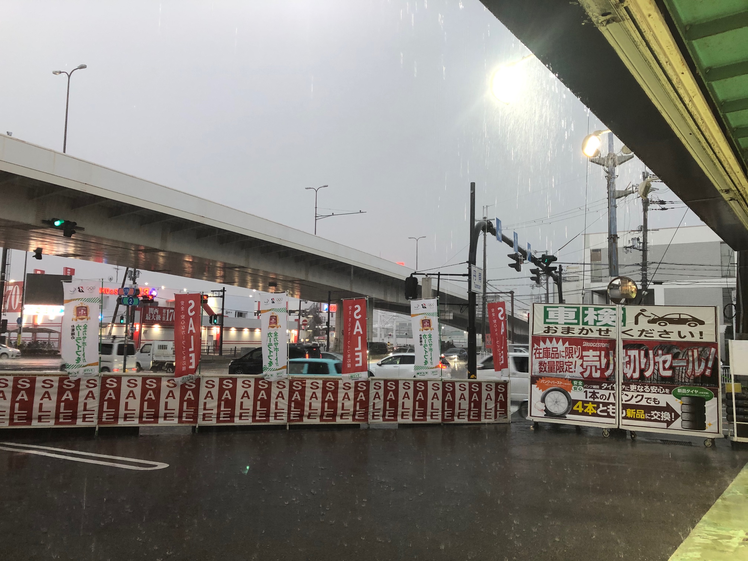 道行く車のワイパーが凄いスピードで動いていますが、