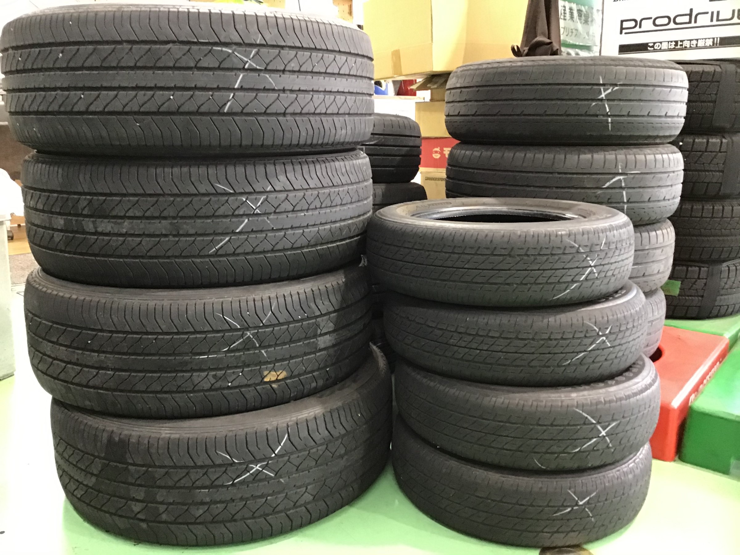 こちら12時頃の状態。オープンしてすぐからご来店多数!タイヤ交換多数でこの写真を撮っている時にもタイヤ交換をしておりました…!廃タイヤの山ができるできる!盛況!非常に盛況でございます!!