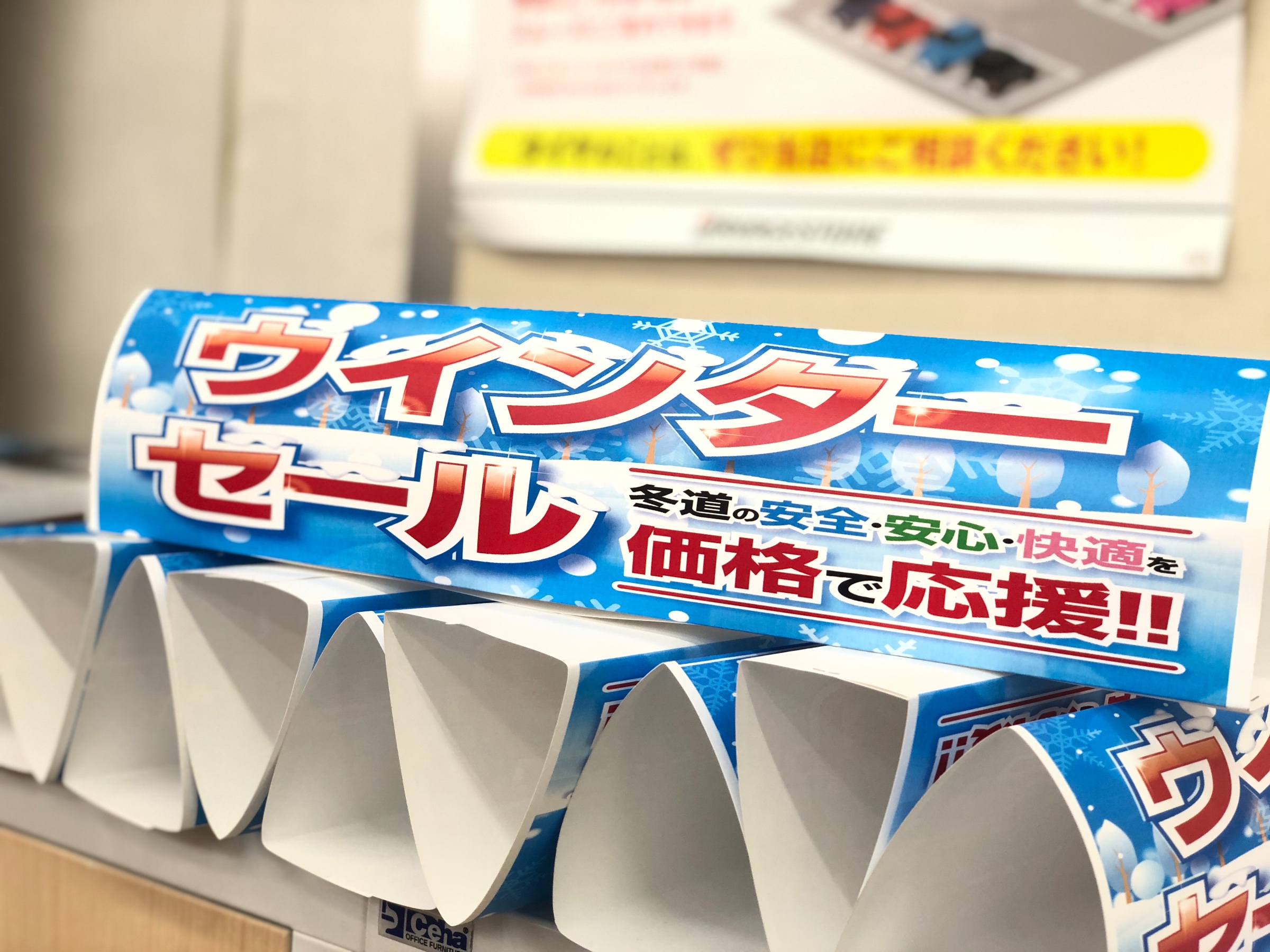 タイヤ館松原では明日からのセールに向けて