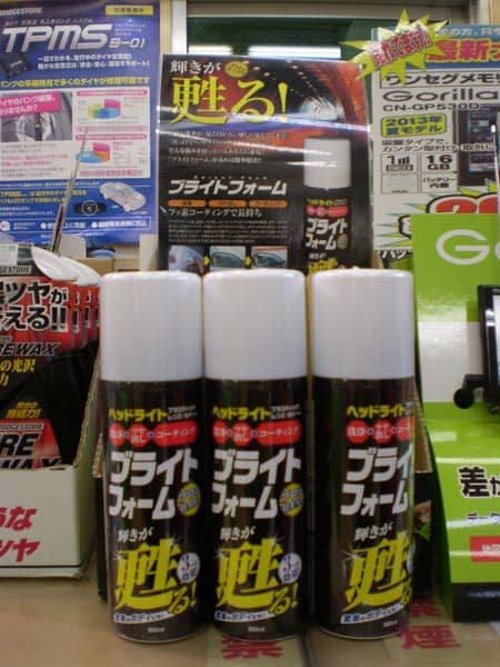 2,ヘッドライトにブライトフォームを吹きかける。もしくは布にブライトフォームを吹きかける。