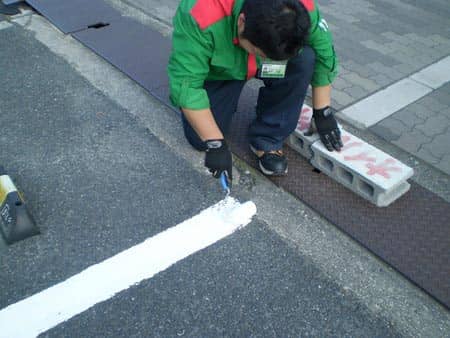 駐車場の駐車枠を区切る白線がカスカスになってきましたので、