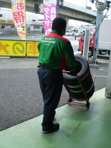 ということで、入荷したタイヤを片付けたり、展示の準備です…。