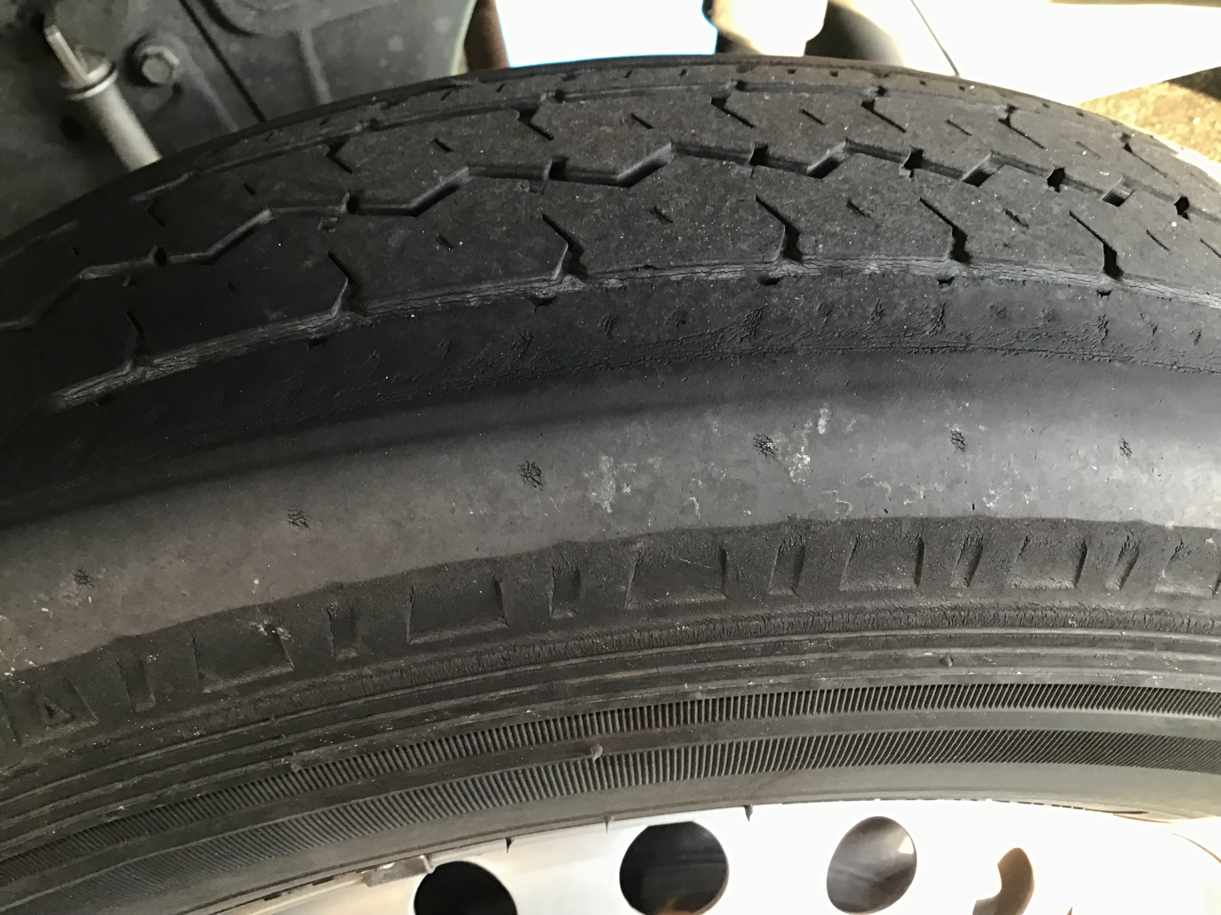 タイヤ側面の文字の部分が擦れて消えてしまっているのが