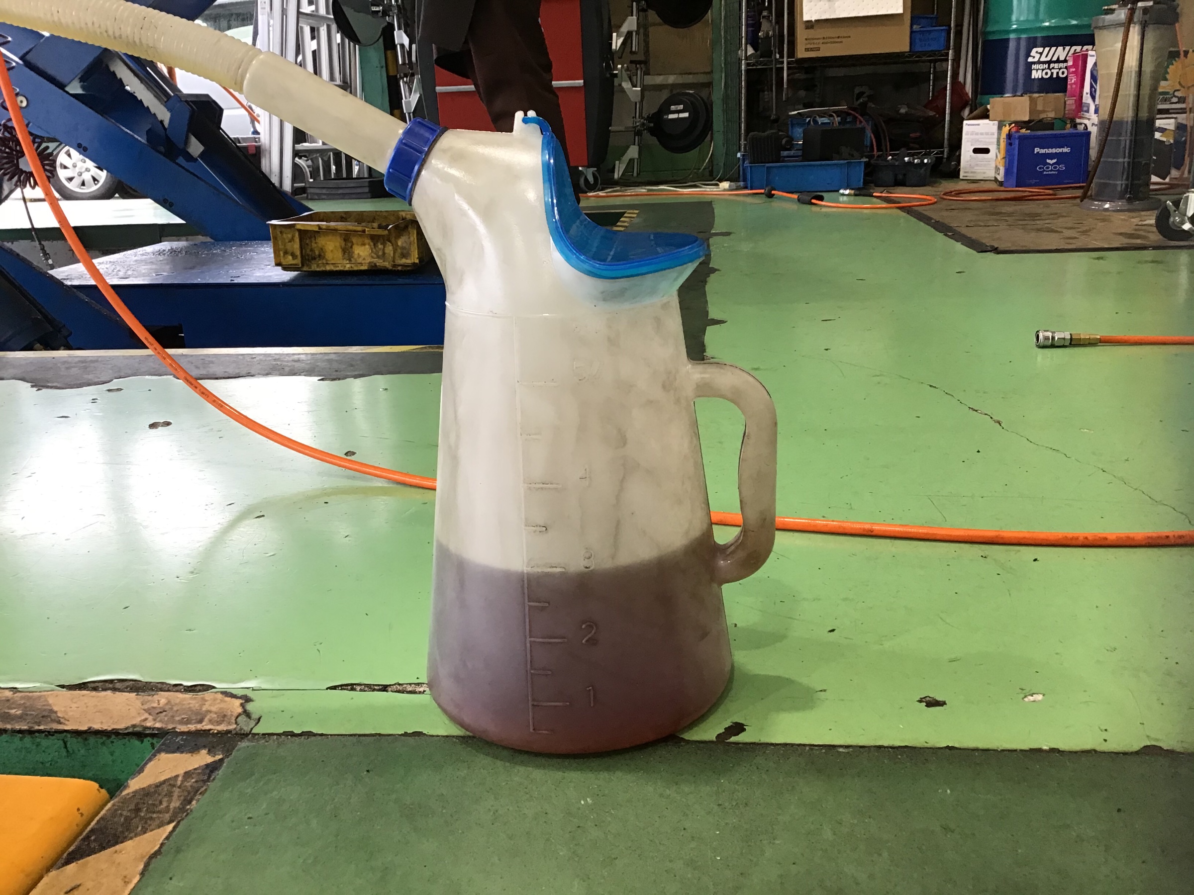 まず、古いエンジンオイルを抜き取り、新しいエンジンオイルを入れさせてもらいます\(^o^)/