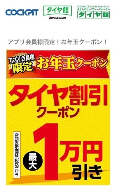 タイヤ館アプリ会員様限定!!「お年玉クーポン」発行中!!