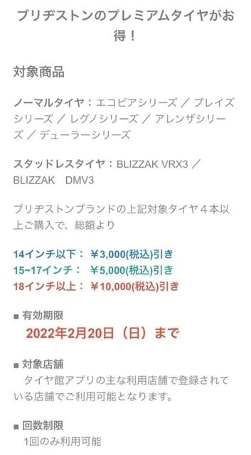 ※※※この方法は2/20(日)までの期間限定!ブリヂストンタイヤ4本交換が対象となります※※※