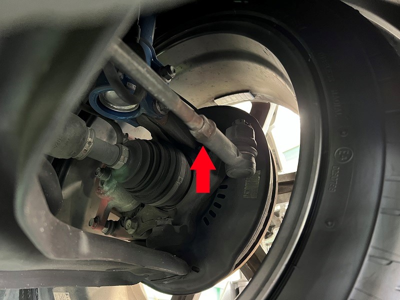フロントはタイロッドエンドでの調整(矢印の場所)